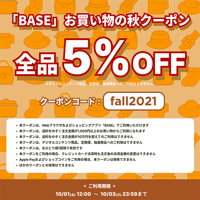 *必ず購入時にクーポンコード【fall2021】をご入力下さい、こちらでは任意に適用出来ません。