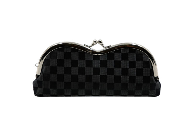 西陣織とナイロンの市松模様が非常に美しいがまぐち眼鏡ケース