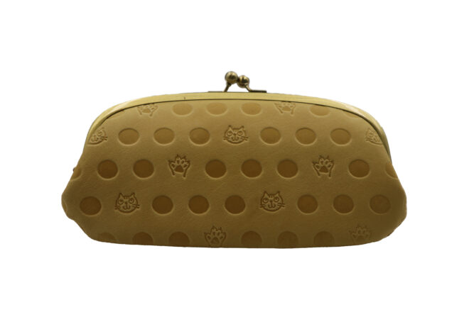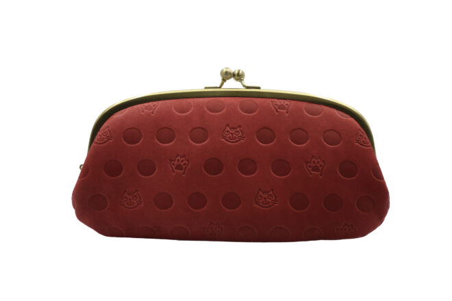 ねこ好きには堪らない!ねこの型押しが最高にキュートな牛革がまぐち財布!
