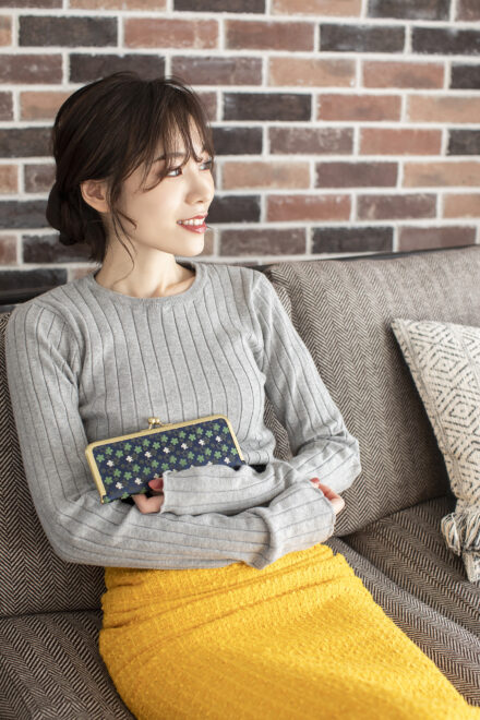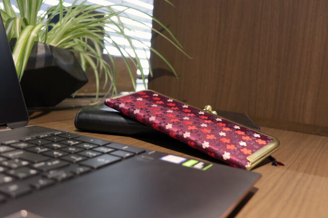 さっと片手で簡単に開け閉めできるよう、ファスナーではなく、がま口を選択しました。