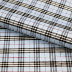通常織機には1色の経糸(タテ糸)しかかけれませんが、仕上がりの美しさを優先し2色の経糸をかけられる特殊な織機を使いました。鮮やかさを優先する部分はより鮮やかに、織り上げられたタータンチェックはシルクの持つ発色の良さを存分に発揮しています。