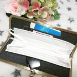 細身のがま口なのに、どうやってマスクを収納するのかというと、がま口をガバッと180度あけてマスクを載せます。落ちないように抑えの紐を真ん中に通し、後はがま口を閉じるだけ。