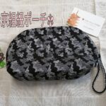 職人技が光る京組紐ポーチ✾/西陣織シルク・シェル型ポーチ・京組紐引手・迷彩グレンチェック・ブラック迷彩・日本製