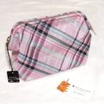 とにかく可愛い/撥水加工・西陣織シルク・がばっと開くアクセサリーポーチ・マルチチェック・ローズピンク・日本製